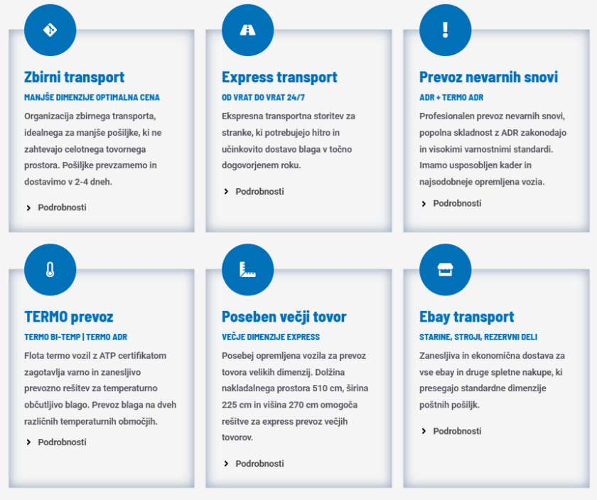Naša prednost je ponudba celovitih logističnih rešitev, ki so prilagojene potrebam in zahtevam naših strank. Z dolgoletnimi izkušnjami in mrežo priznanih partnerjev po celotni Evropi, zagotavljamo natančno organizacijo, zanesljiv transport in pravočasno dostavo vaših pošiljk. Ne glede na kompleksnost ali destinacijo, naše storitve so zasnovane za maksimalno učinkovitost in zanesljivost.
