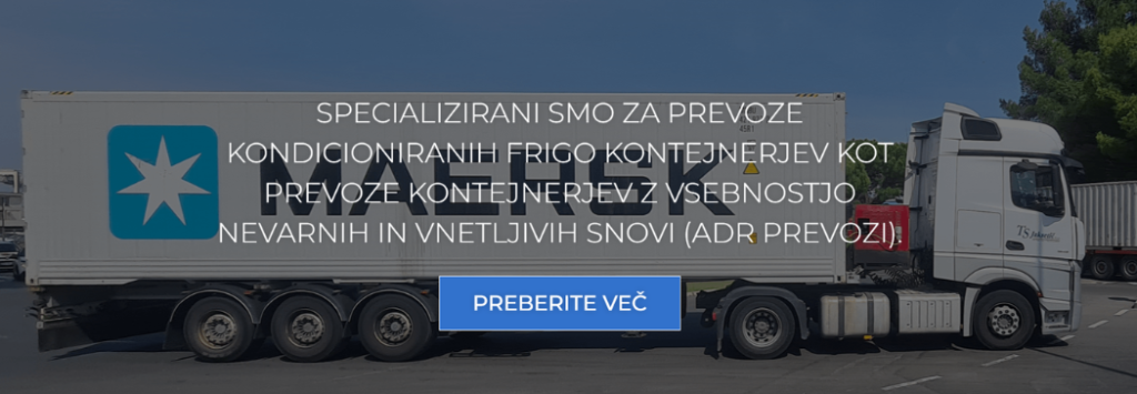 Specializirani smo tako za prevoze kondicioniranih frigo kontejnerjev kot prevoze kontejnerjev z vsebnostjo nevarnih in vnetljivih snovi (ADR prevozi)